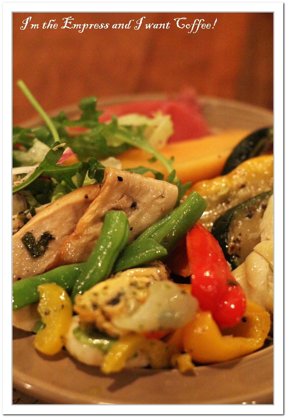 Driven away by the very dry bread, I used pumpkin and corn to fill my starch quota. The salad were all generously covered with olive oil. I was glad that the bell pepper and pumpkin were juicy, although it would be perfect if they were grilled for a tiny little bit longer. Those fried mushroom and green beans salad apparently needed more seasonings other than olive oil.
